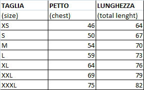 MISURE DISPONIBILI: XS – S – M – L – XL – XXL