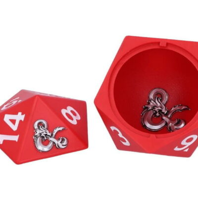Nel leggendario gioco di ruolo fantasy Dungeons & Dragons, il D20 è il dado caratteristico di tutto il gioco, viene utilizzato ogni volta che vuoi tentare un’azione, il risultato determinerà se hai avuto successo o meno, risultando in una vita continua , o addirittura la morte. La scatola dei dadi di D&D di Nemesis Now ha la forma del famigerato dado icosaedro, decorato in rosso caramella.
