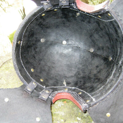 artigianalmente in cuoio con particolari ottonati.