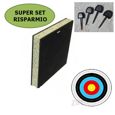battifreccia spessore 10cm + caratteristiche tecniche e dimensioni vari articoli : 2)10 fogli bersaglio in cartoncino 3)set 4 chiodini per fissaggio bersaglio |