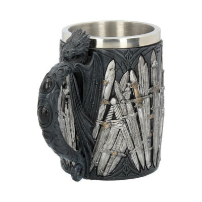 Boccale fantasy decorato da una moltitudine di spade su sfondo nero.