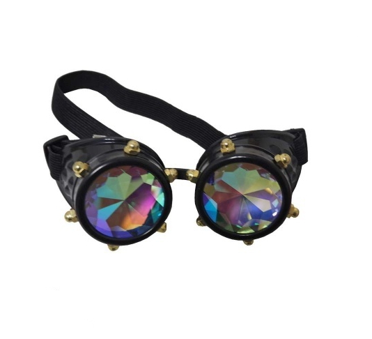Occhialini in misura standard adattabile a tutti, regolabili con le fibbie della fascia elastica, con lenti in cristallo multicolor.