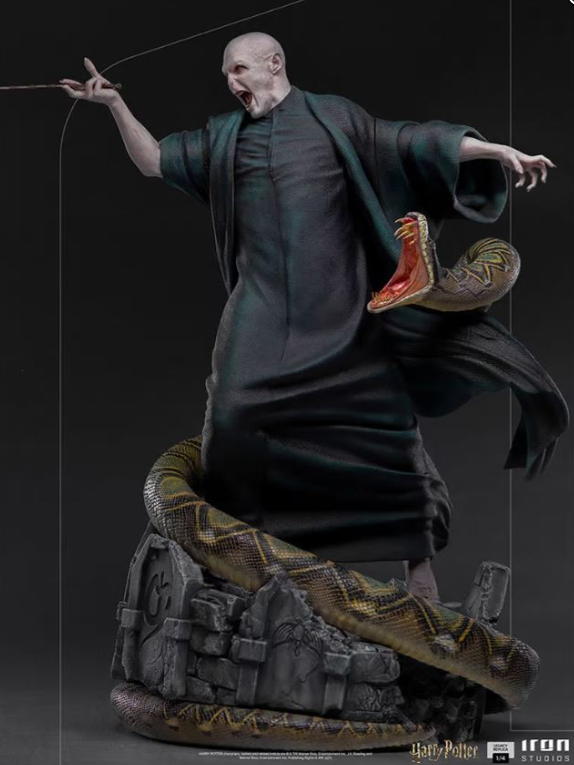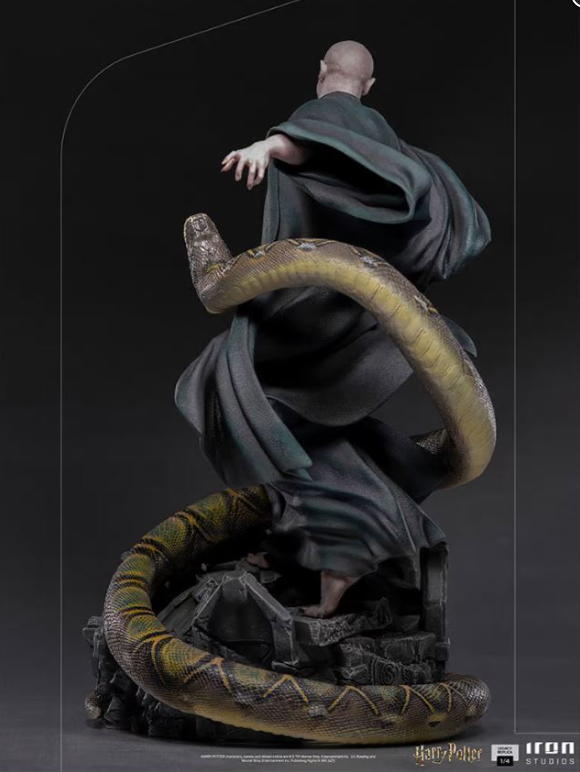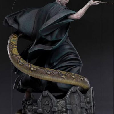 Da Iron studios la statua di Voldemort e Nagini legacy replica, dalla saga di harry potter. mostruosamente imponente la statua in scala 1/4 (57cm in altezza ) è in resina dipinta a mano e arriva in edizione limitata.