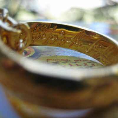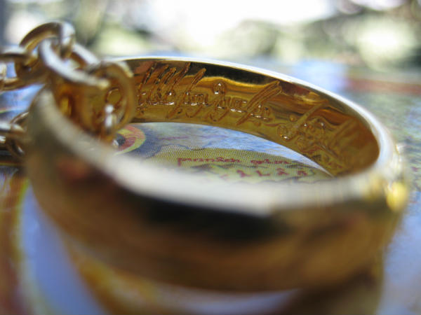 L’ Anello ha delle incisioni in elfico all’interno ed all’esterno,