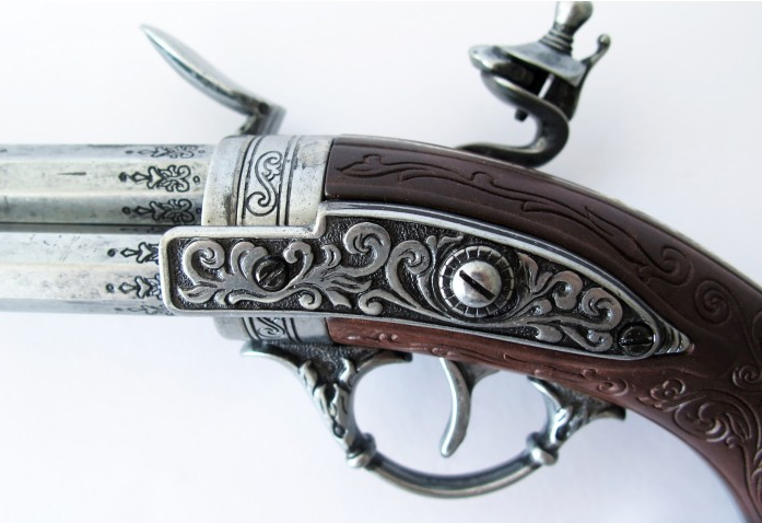 Replica della pistola a tre canne utilizzata in Francia fino al XVIII secolo.
