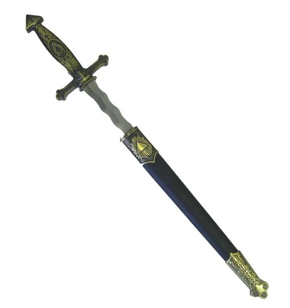 Replica non affilata di pugnale massonico cerimoniale dorato.