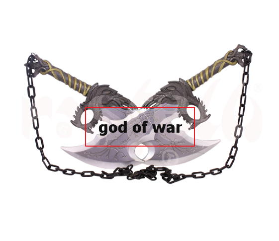 Prodotto composto da due spade arrotondate collegate da una catena in polimero.